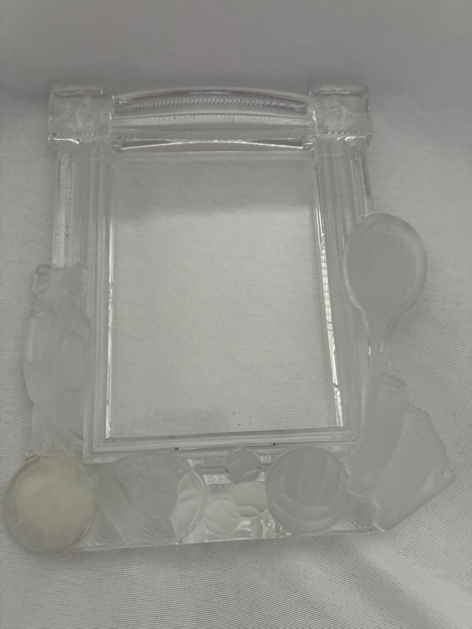 Crystal picture frame with sports, ballet and ice skating engraving.